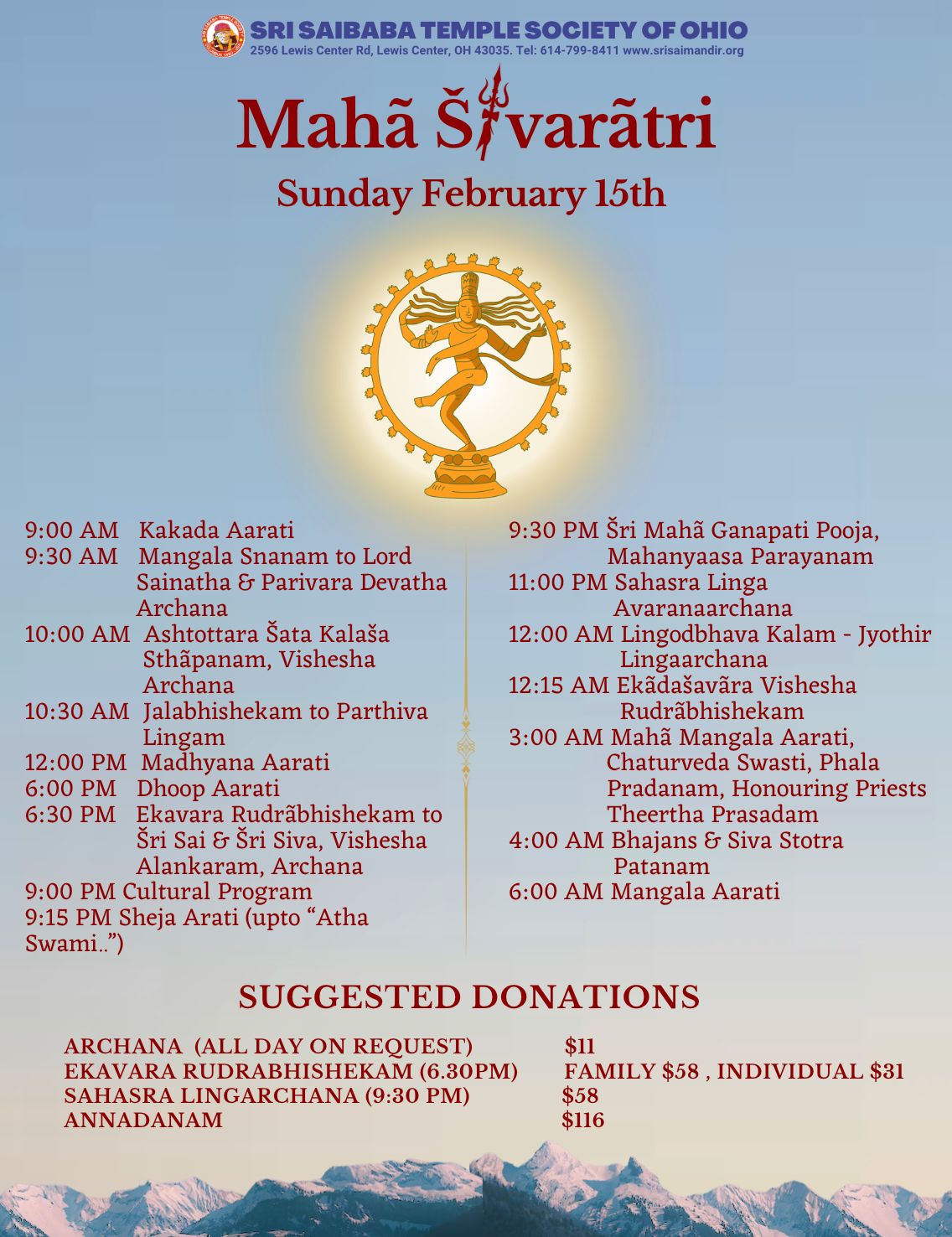 Devotees number grew over a period of time to hundreds, space was leased at New Market Mall, Columbus to provide a central place of worship for all Saibaba devotees. By the will and grace of Sri Saibaba, Sri SaiBaba Temple
