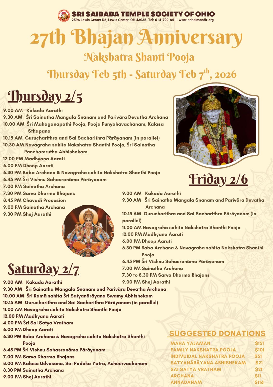 participation of all the devotees in the central Ohio and elsewhere.