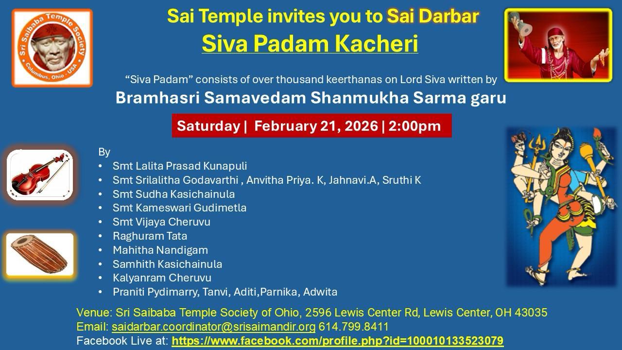 Check the temple Facebook Page for Sai live dharshan and other events. Please like the page to get quick updates and notifications.